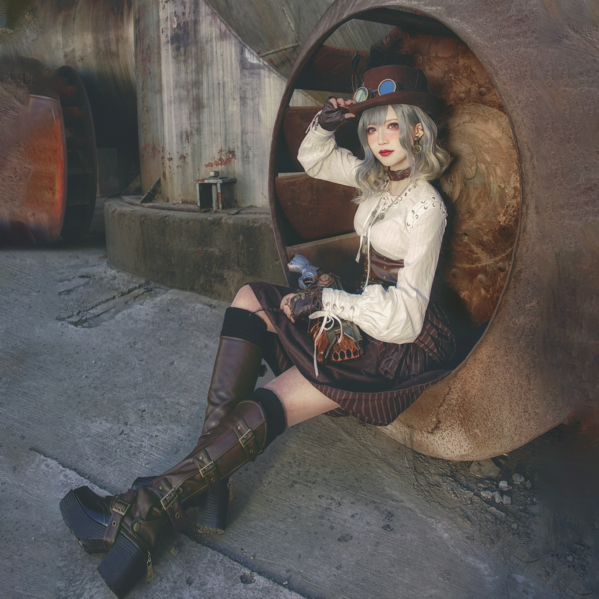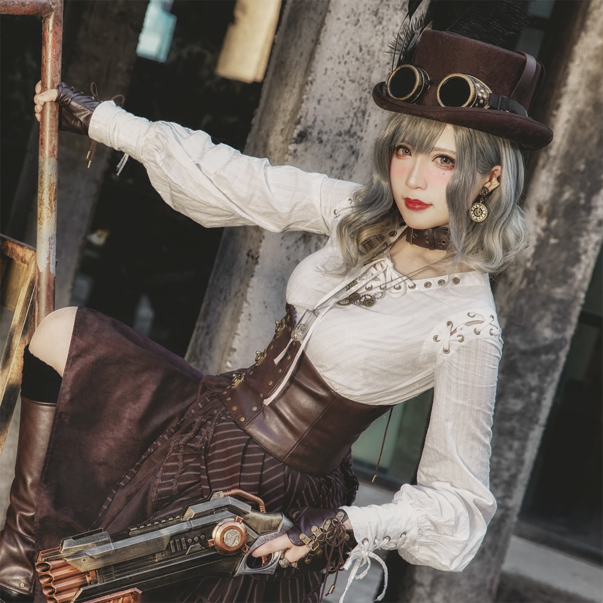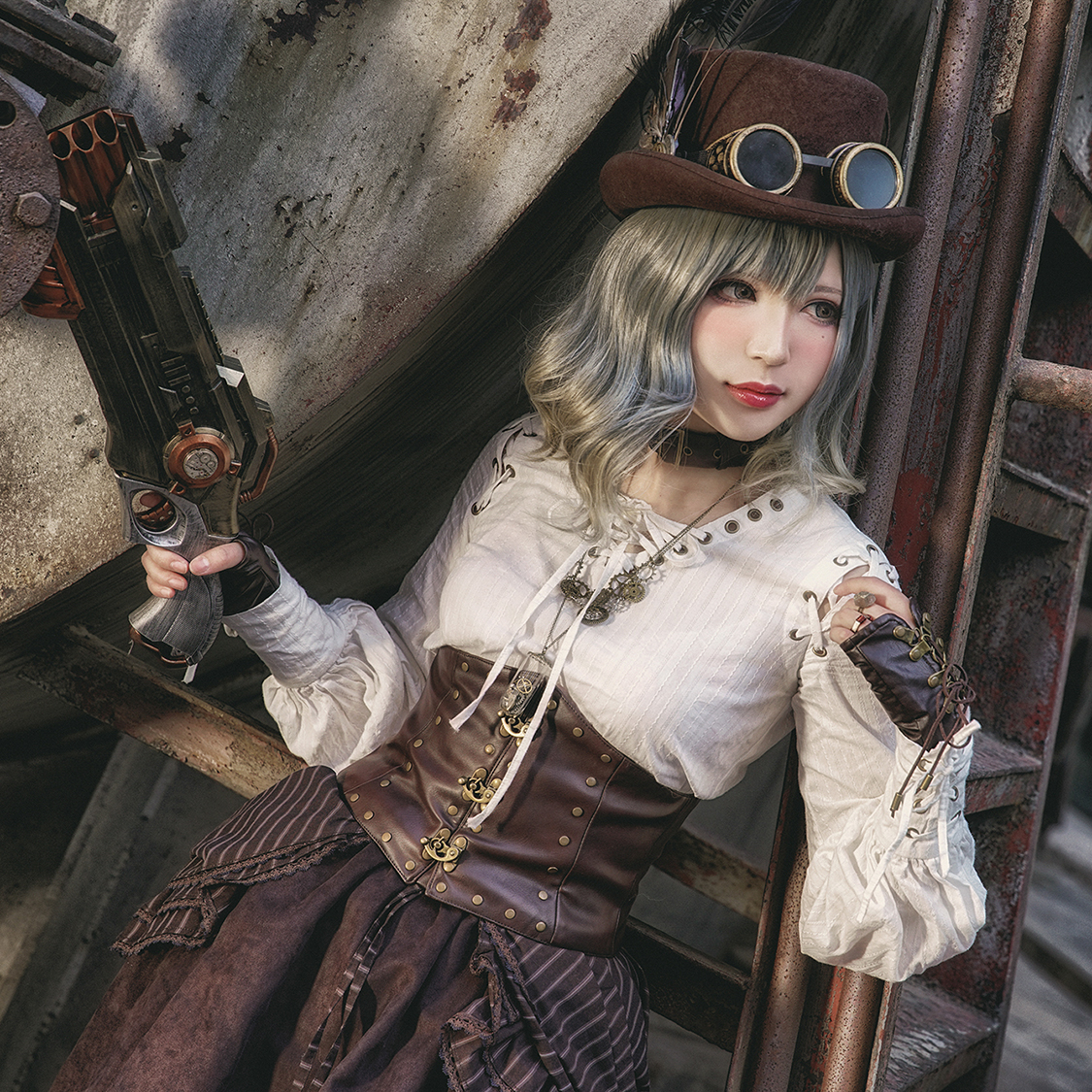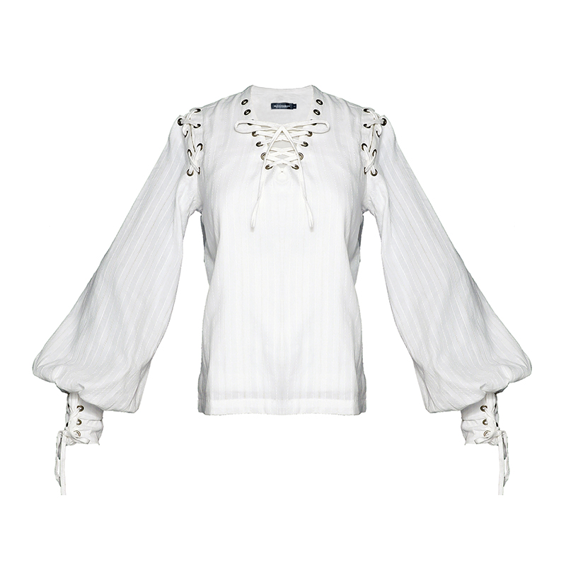 Steam Continental steam punk retro draw with strap white pure cotton long sleeve head straight cylinder blouse blouse