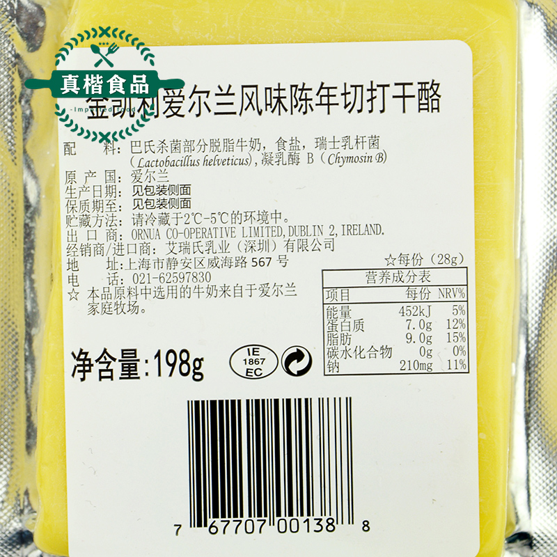Chen years of cheddar cheese 198g pieces of Irish flavored cheddar cheese 198g two pieces of Irish flavored cheddar cheese 198g three pieces of Irish flavours Chen years of cheddar cheese 198
