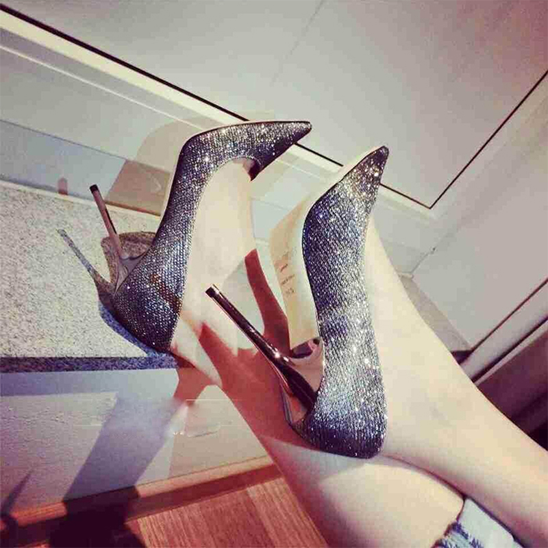 Red heels female fine heels tip skin from the stars of your thousand Songyi same silver gray single shoe