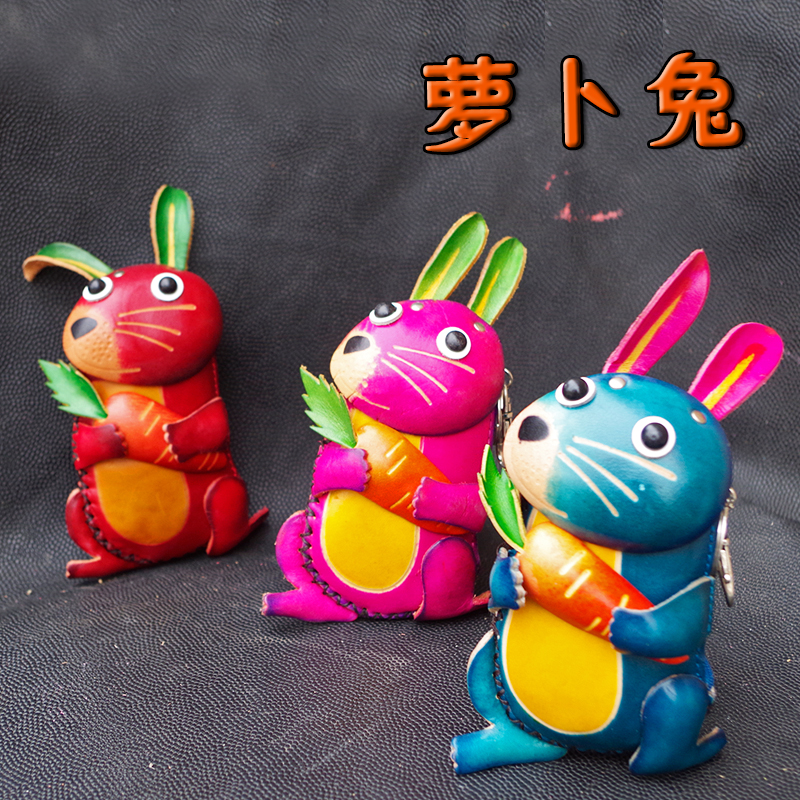 Rabbit leather coin purse women's bag leather handmade coin bag keychain cartoon children's shoulder bag