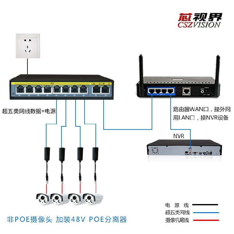 48V10 port network power remote POE power supply switch network cable power supply HD surveillance video transmission new products