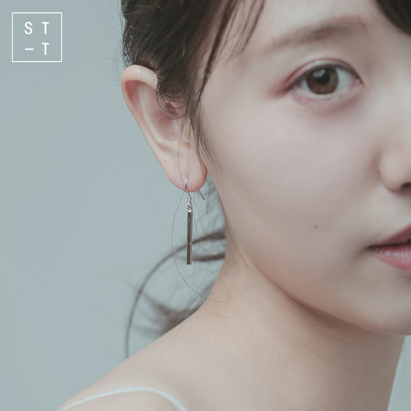 925 pure silver gilded earrings, Japan-ROK minimalist geometric solid long version of earrings female earrings pendant