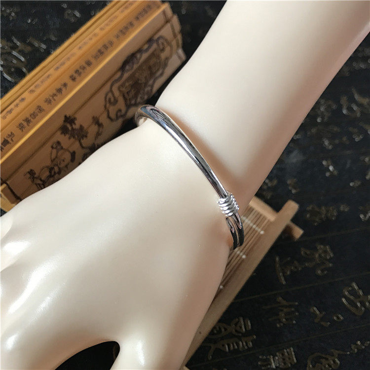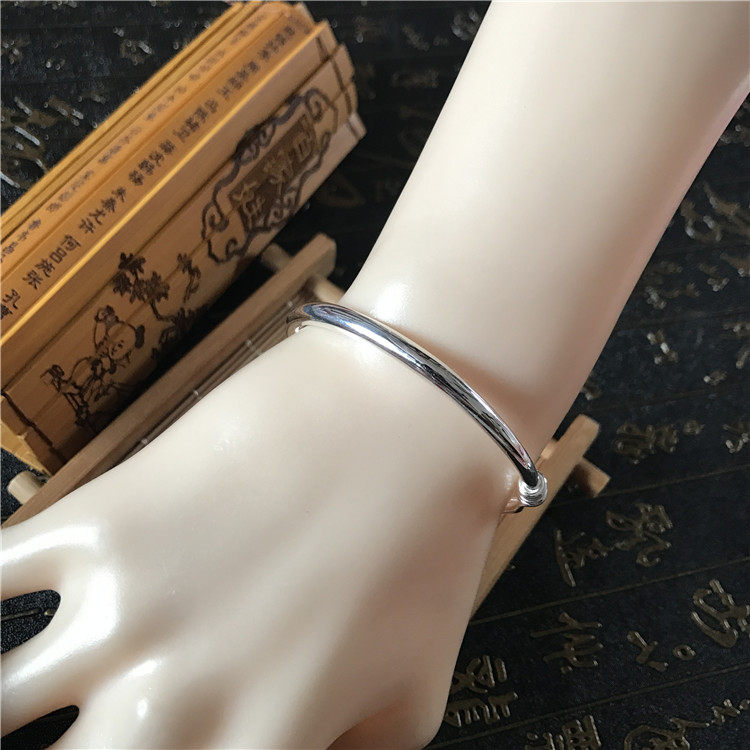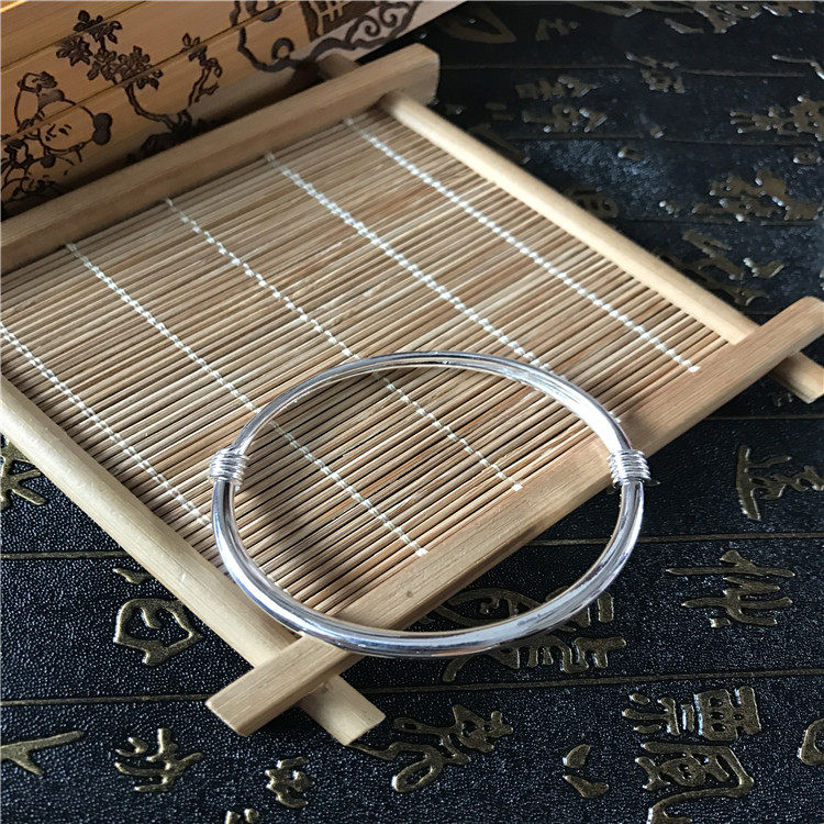 Pure silver foot silver 9999 tangle wire push-pull adjustable in size pure glossy round belly silver bracelet