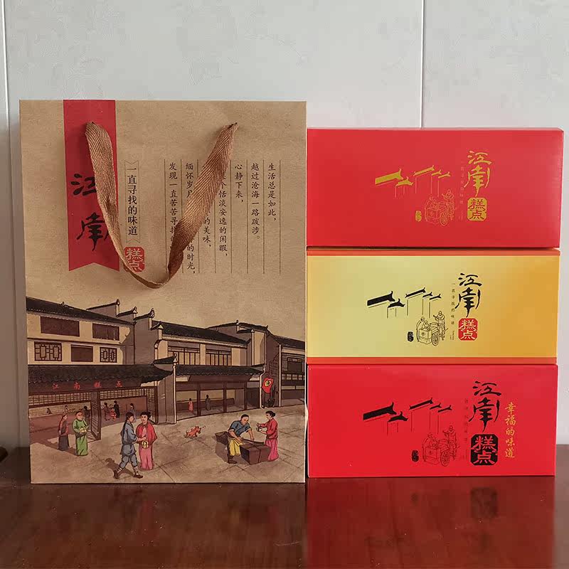 Jiangnan millet crisp packaging box kraft paper handbag baked goods peach crisp paper box folding snack gift box