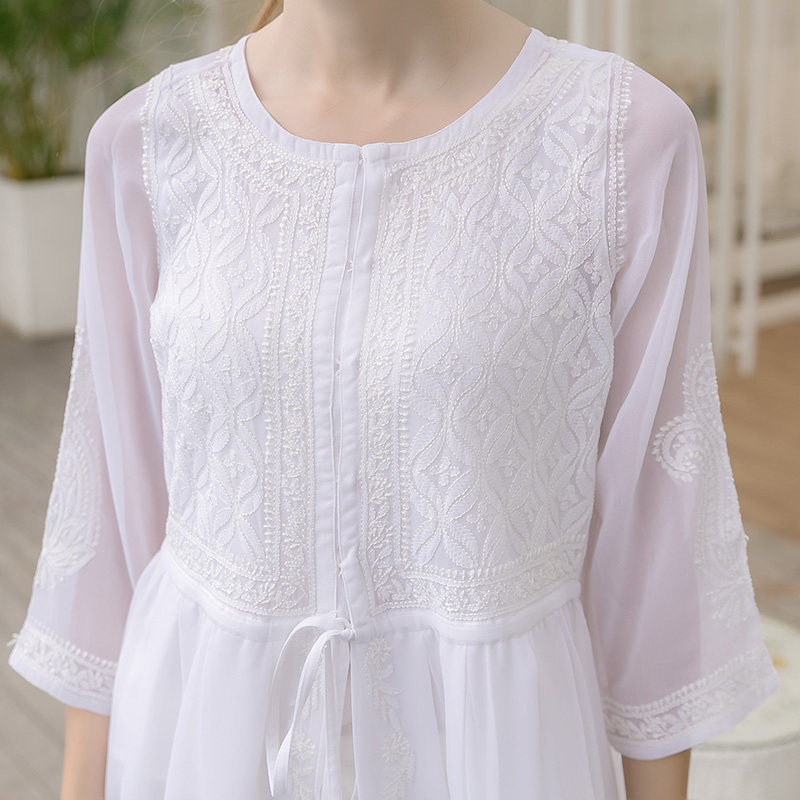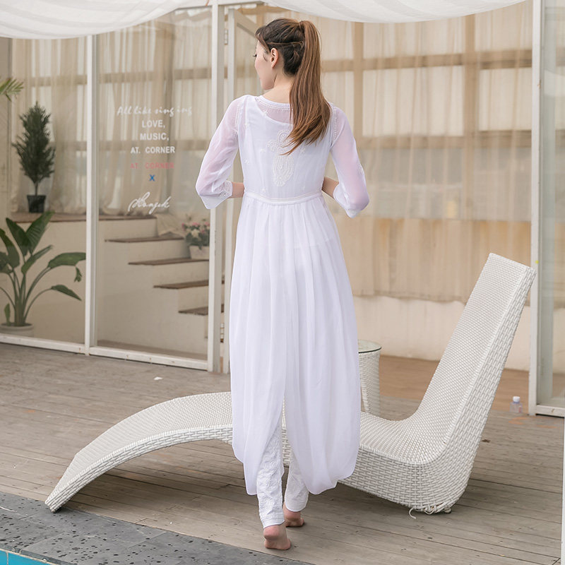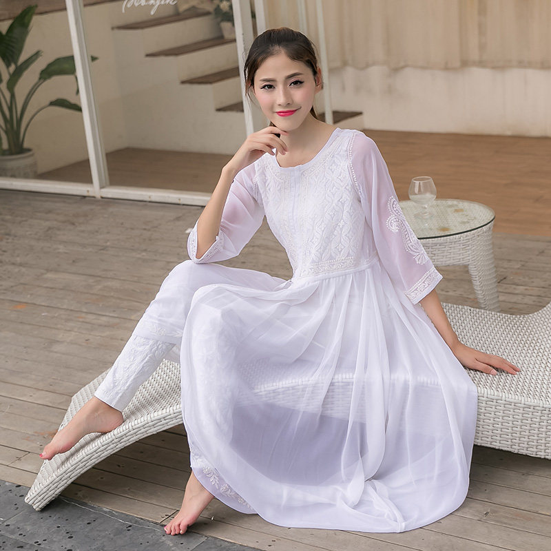 Indian white yoga clothes master suit Joseph yarn pure hand embroidery vest pants three pieces