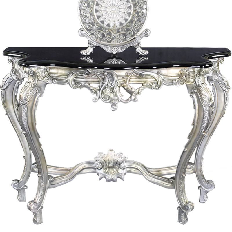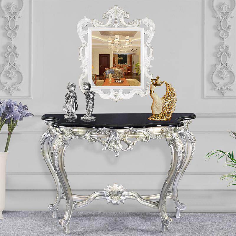 復古银桃木纹色欧式镜框 玄关桌黑色描银