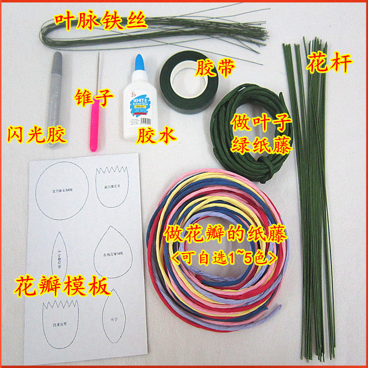 Paper Rattan flower diy material set Rose carnation paper flower production material package Student handmade class homework
