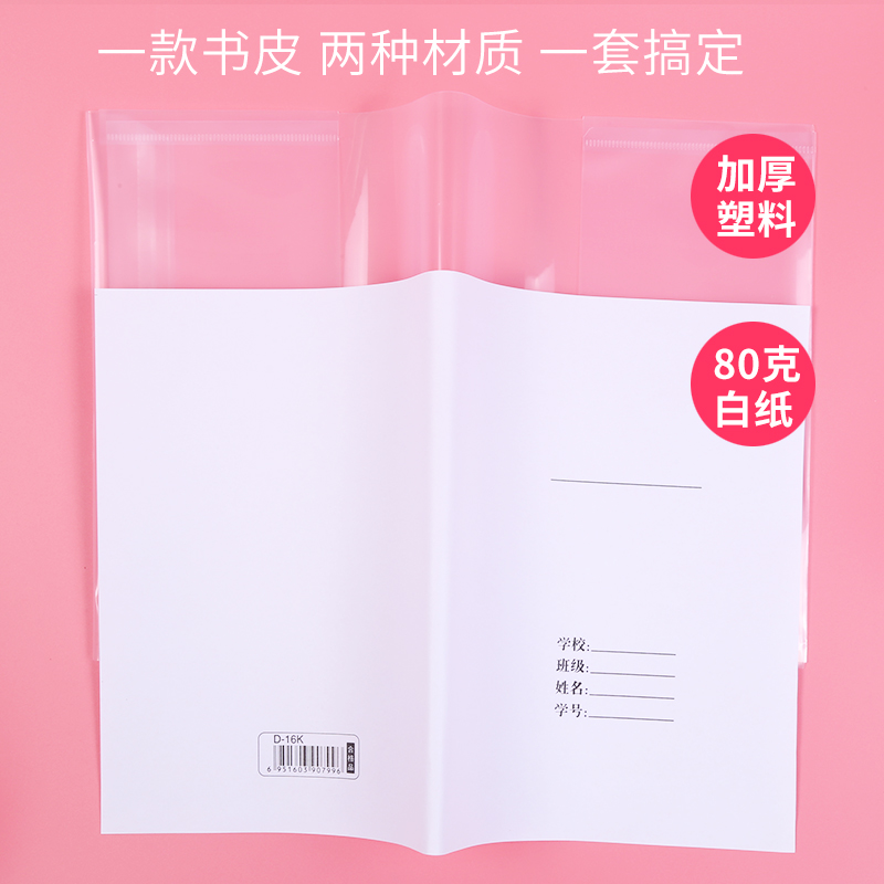 School white paper plastic book cover First and second grade Zhu Ling Bird thickened transparent book cover First grade primary school students white book cover 2-in-1 leather bag book paper transparent skin Mathematics language Tiange English book cover
