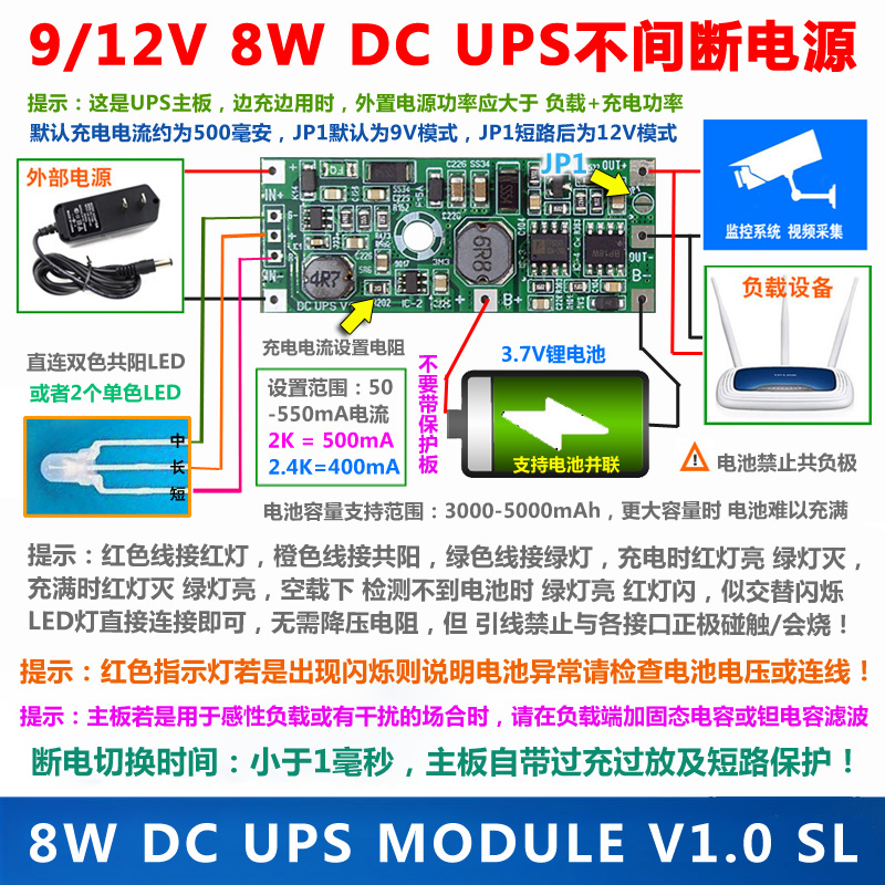 8W-10W DC UPS power supply module uninterruptible power supply motherboard supports 9V or 12V network equipment