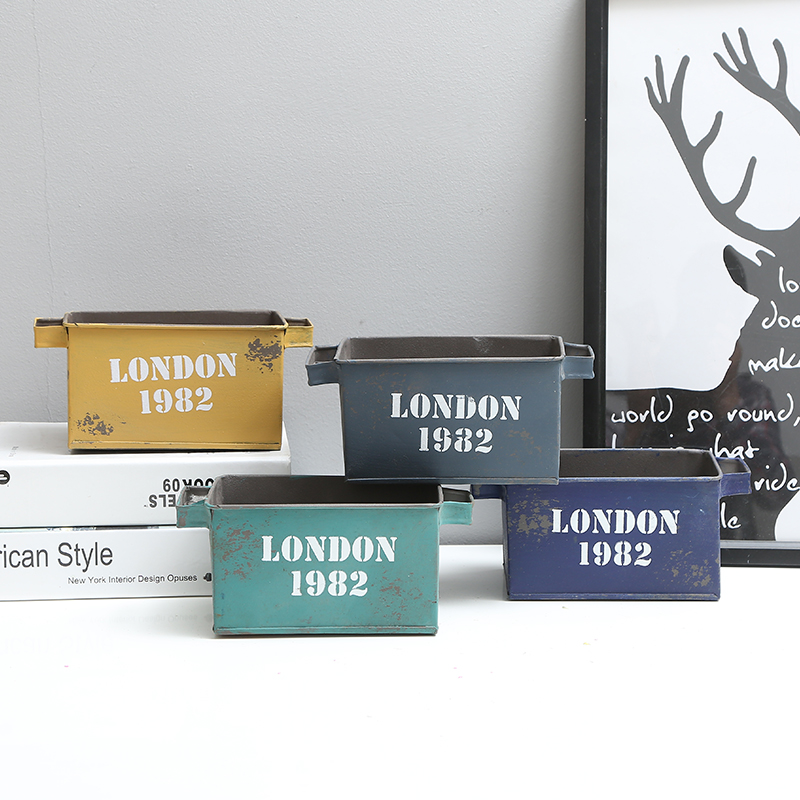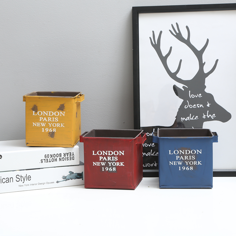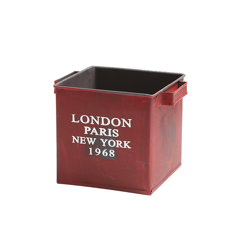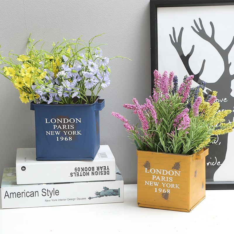 Nordic wind minimalist around retro square iron sheet barrel made of old flower barrel green plant decoration containing box frame fake flower multi-meat flower pot-Taobao