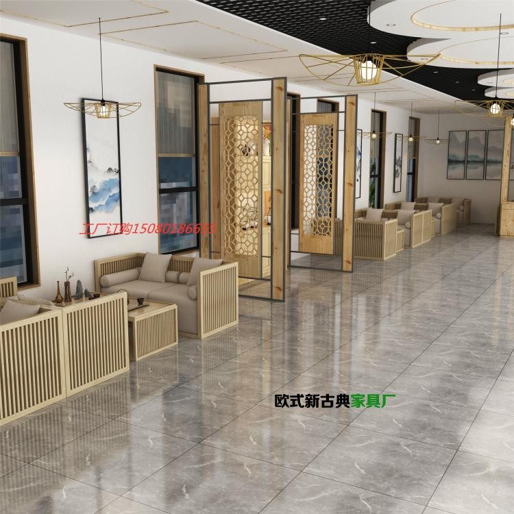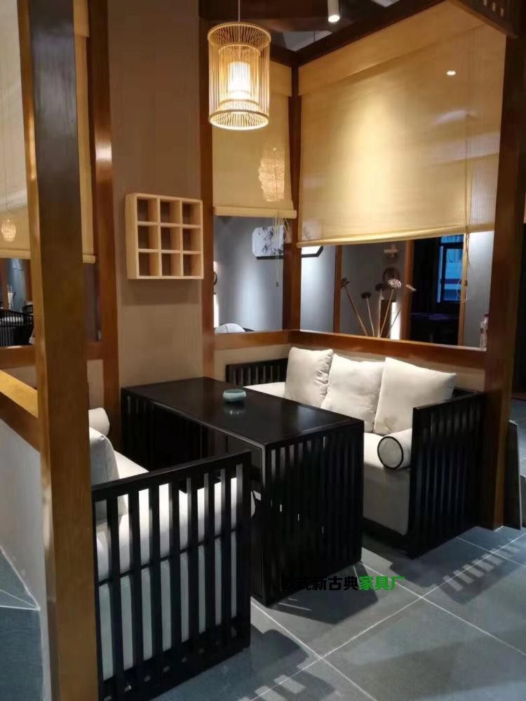 New Chinese Tea House Tea Room Dining Room Dining Hall Sample House Display Center Negotiation Sofa Modern Chinese Hotel Clubhouse Reception Sofa
