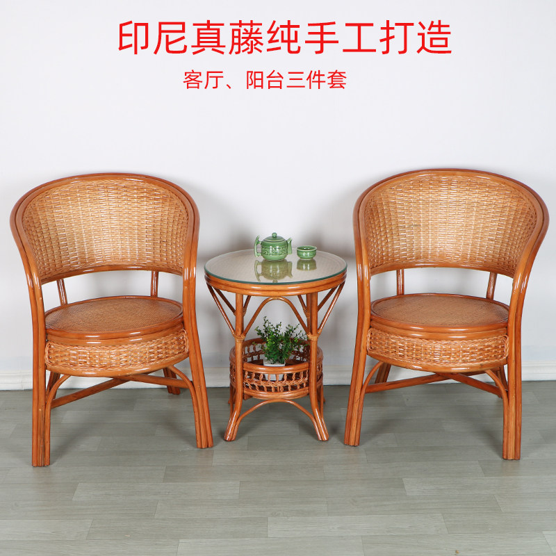 Real rattan chair hand-woven rattan old man's backrest leisure living room balcony cafe teahouse natural circle Teng chair