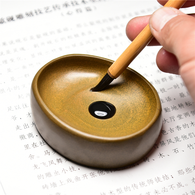 United Star Old Crater Yellow Fish Sub-block Ink Stone ink Stone Slabs Natural Original Stone stone Stones Ink-stone Waist Round Fish Eggs Longtail Boutique Mini-room Four Treasure Grilled Ink Students Beginner's Qingkura
