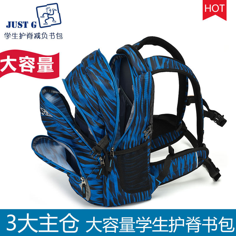 JUST GO to protect the ridge to reduce the burden of primary school students in the third to sixth grade ultra-light schoolbag children boys and girls decompression large capacity