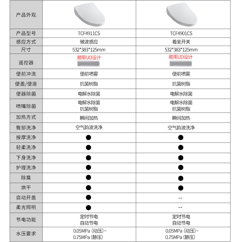 TCF4901CS Electric Deodorant Bacteria Drying Deodorant TCF4911CS Induction Open Lid Soft Light Illumination