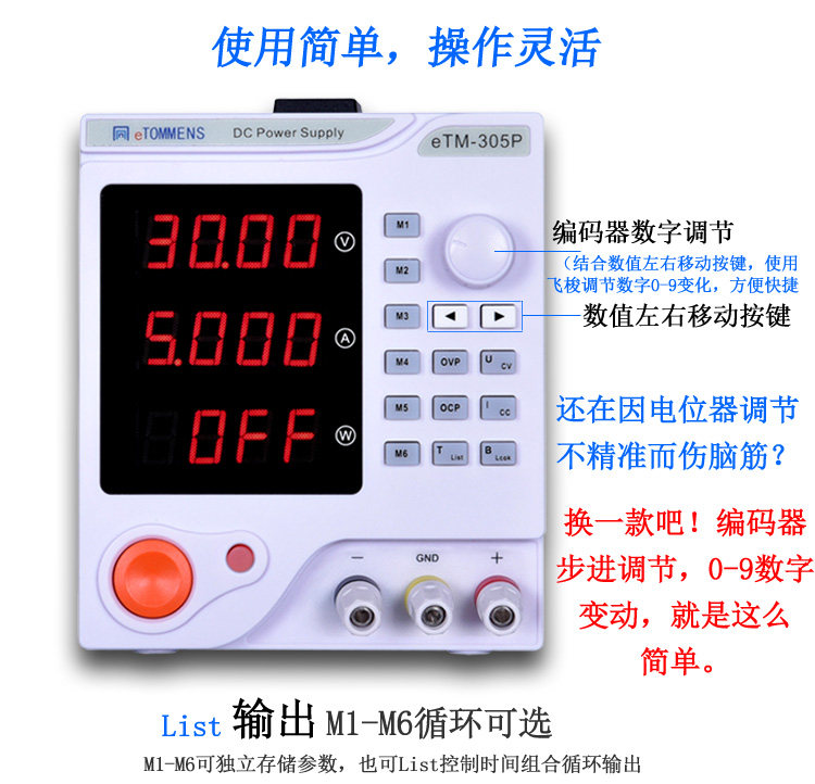 eTM-303DP (0-30V0-3A) linear power supply eTM-305DP (0-30V0-5A) linear power supply eTM-603DP (0-