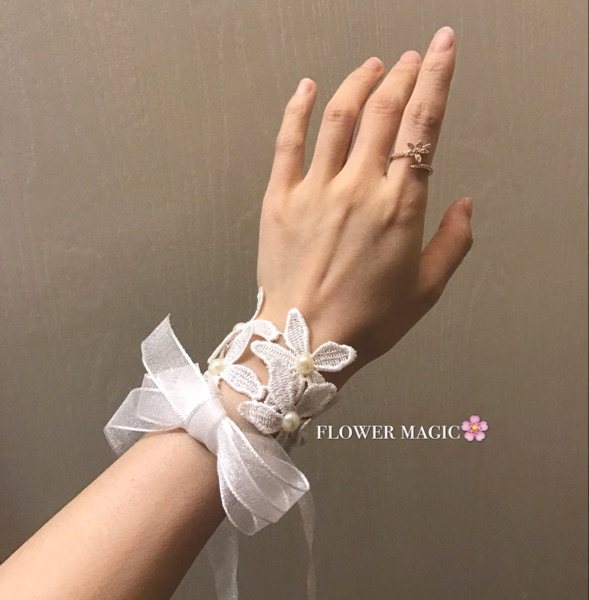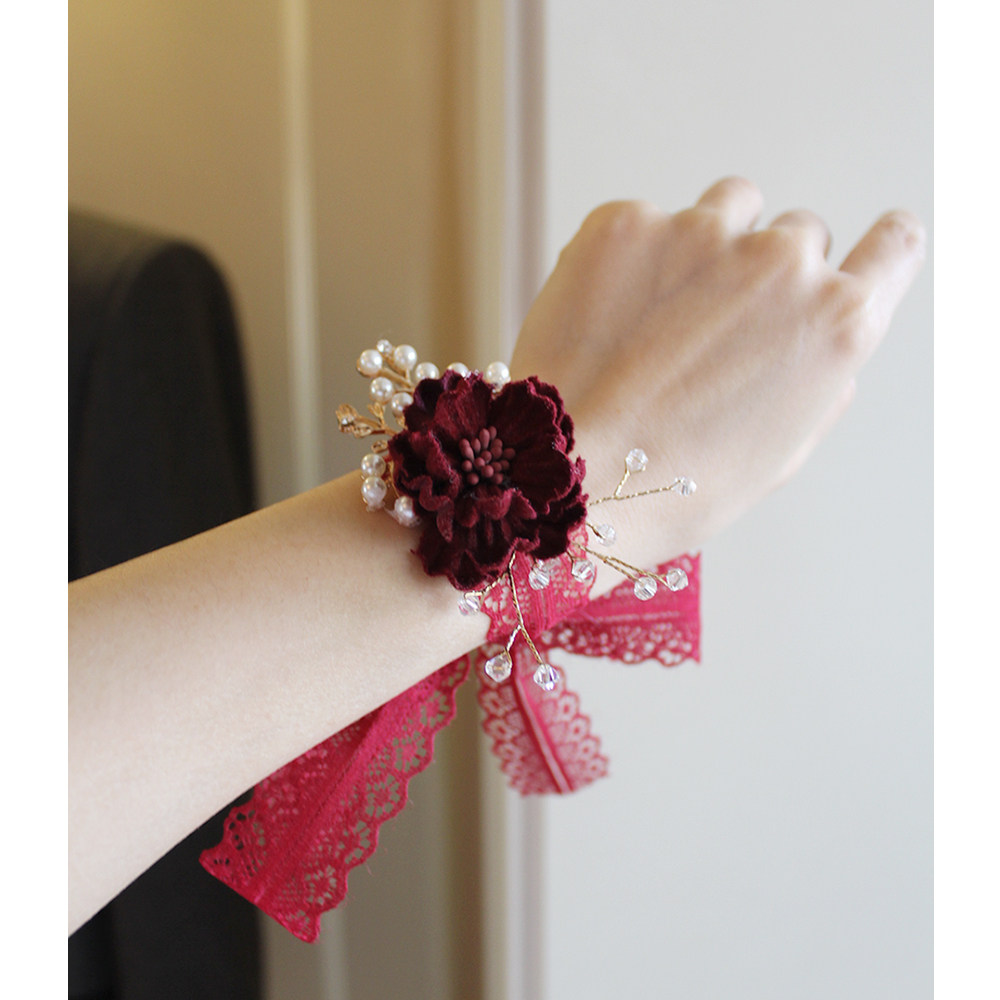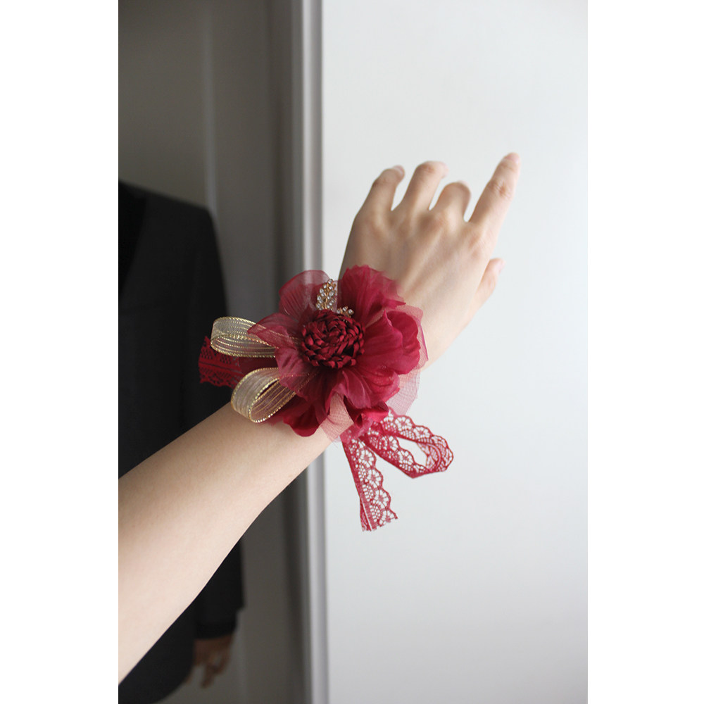 (Lace Wrist Flower)Petal organza ribbon tied wrist Bride toast dress Bridesmaid hand Decorative Hand strap