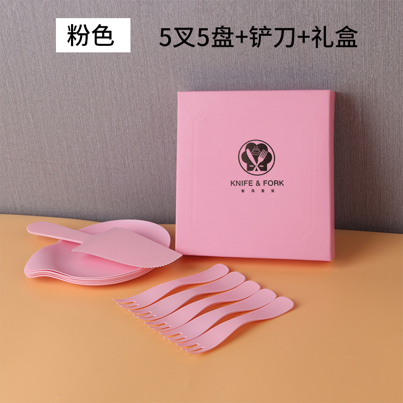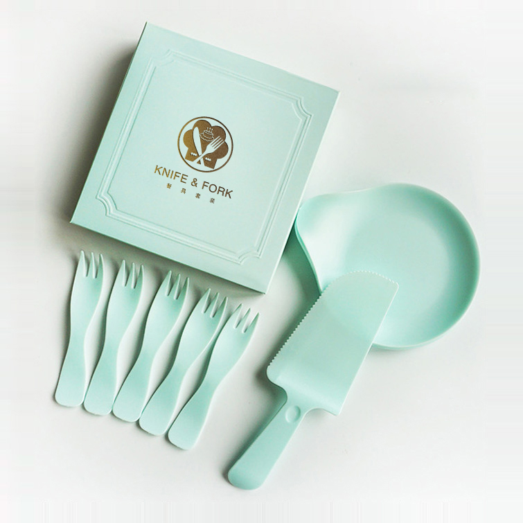Milky white Blue Green Black powder Transparent white Sky blue Light green black pink Beige Dark gray Gray white Light gray Light Blue Peacock blue (black)5 plates 5 forks blade gift box (blue) 5