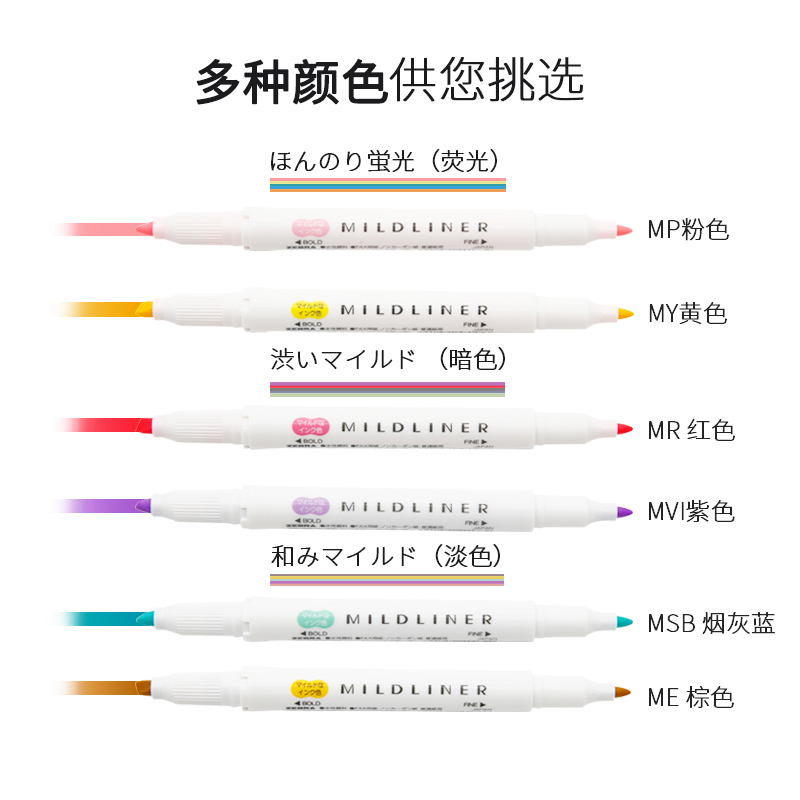 Japan ZEBRA zebra pen highlighter WKT7 pale double-head marker pen student uses handbook stationery marker to make notes color stroke focus set highlighter flagship store official website