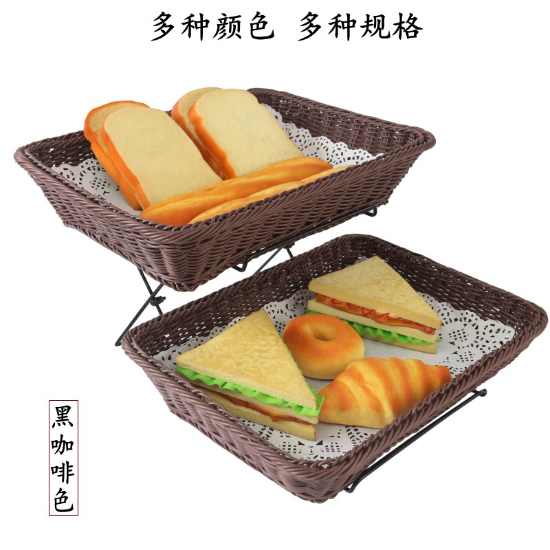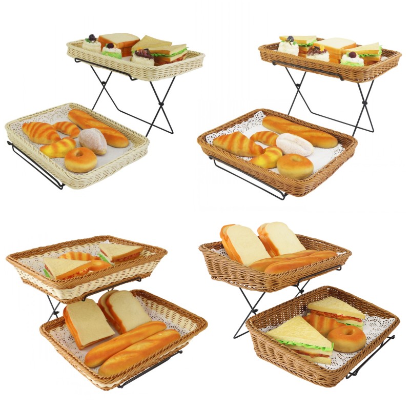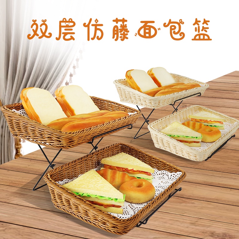 Double-layer rattan egg tart bread basket drain buffet food display rack cake dessert rack fruit display basket
