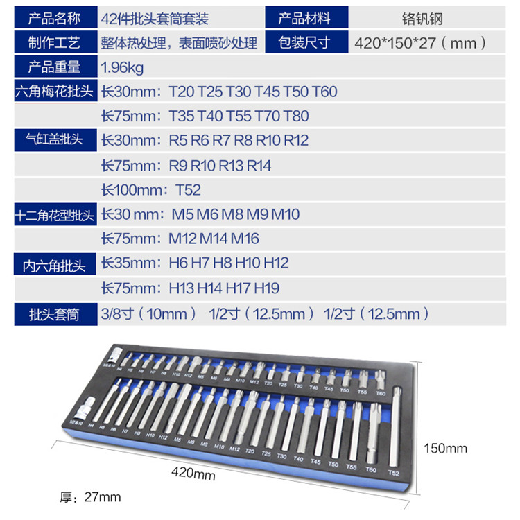 twelve angular sleeve wrench 12 corner batch head tip star-shaped inner hexagonal plum blossom mouth T52 type engine cylinder head screw driver
