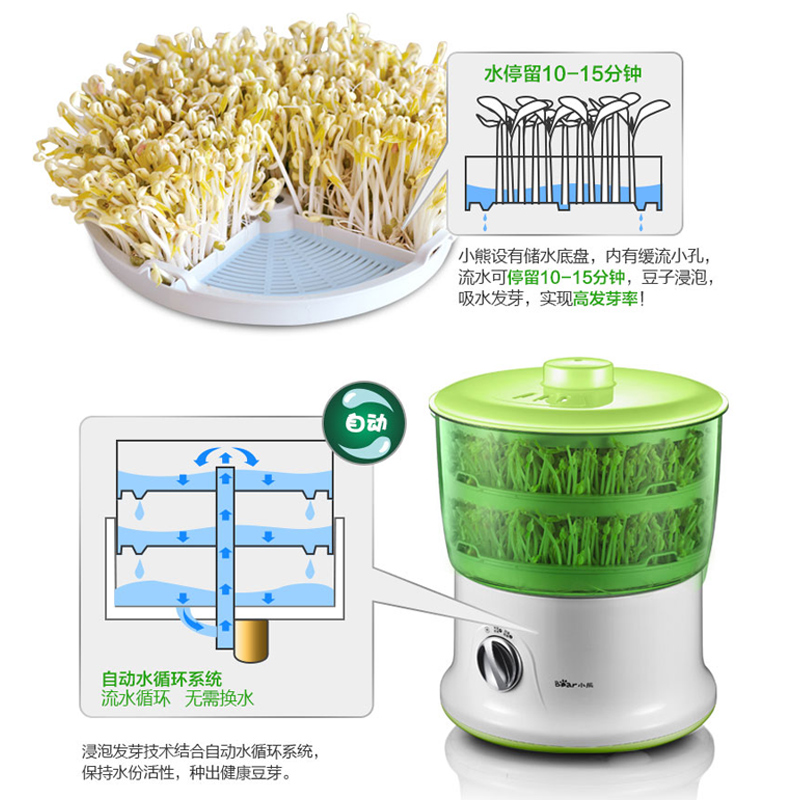 Bear bean sprout machine home automatic intelligent large capacity hair bean tooth vegetable bucket artifact small raw mung bean sprout pot pot