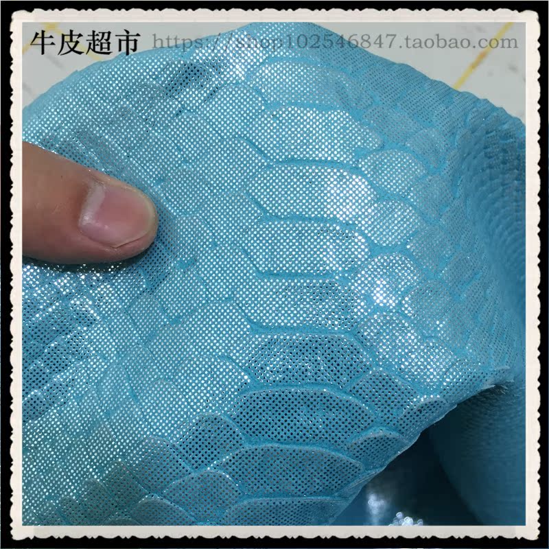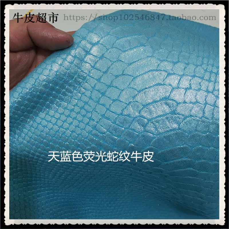 European and American imported first layer cowhide handmade DIY leather leather leather sky blue fluorescent snake pattern soft cowhide