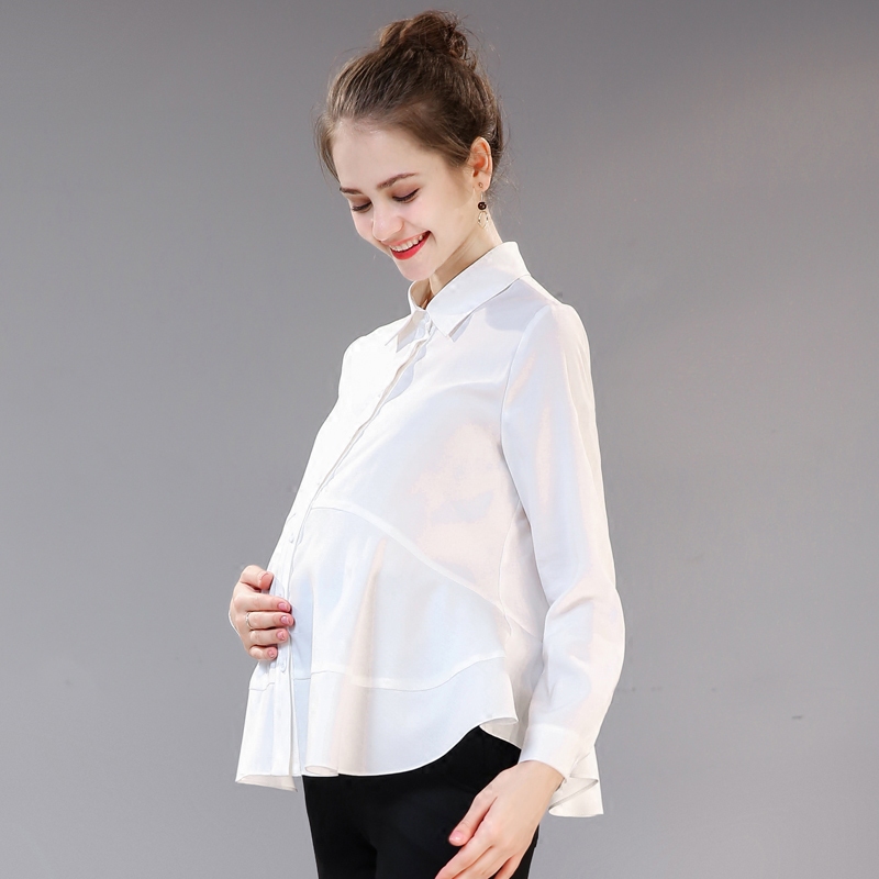 Autumn professional maternity shirt women's spring and autumn white long-sleeved shirt ol business interview frock loose top tide