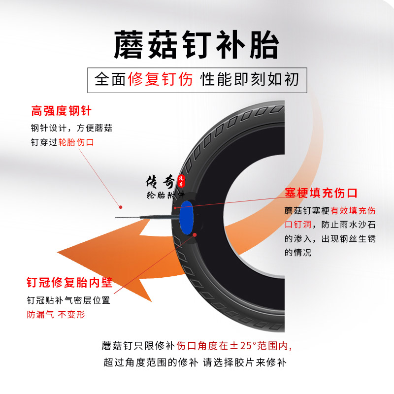 Sford car tire repair mushroom nail vacuum tire repair negative tire integral plug mushroom ding steel nail plug glue
