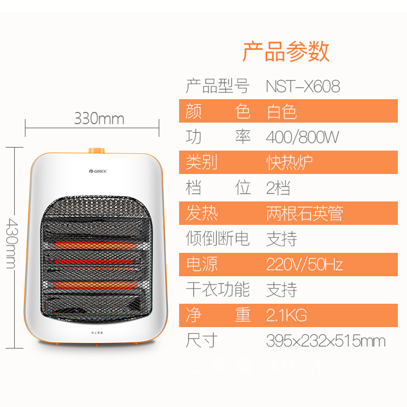 Gree Gree heater NST-X608 far infrared electric heater heater Household infrared electric heating