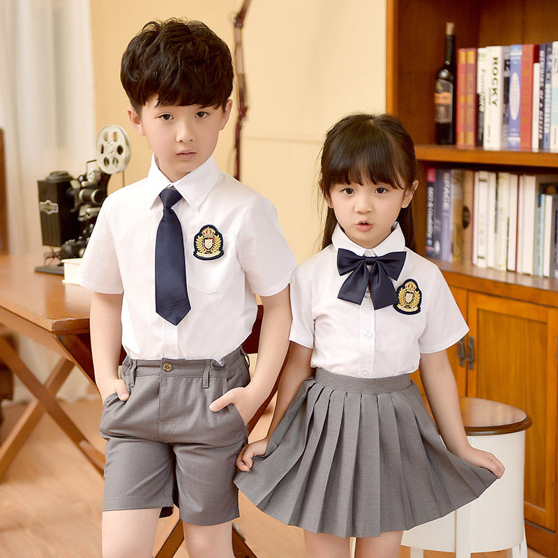 2021 summer uniforms er tong zhuang suit men short sleeve shirt Korean version of the primary and middle school students in class uniform kindergarten yuan fu