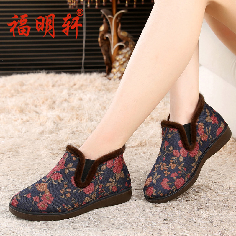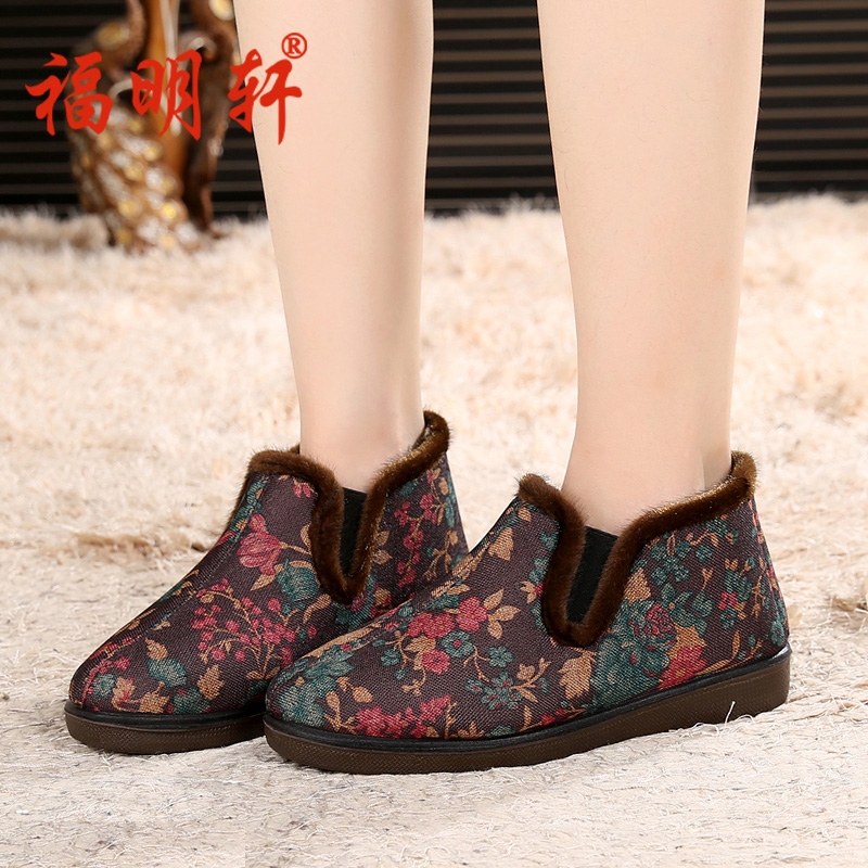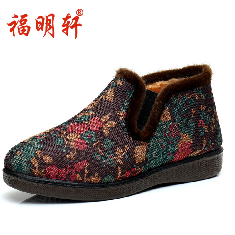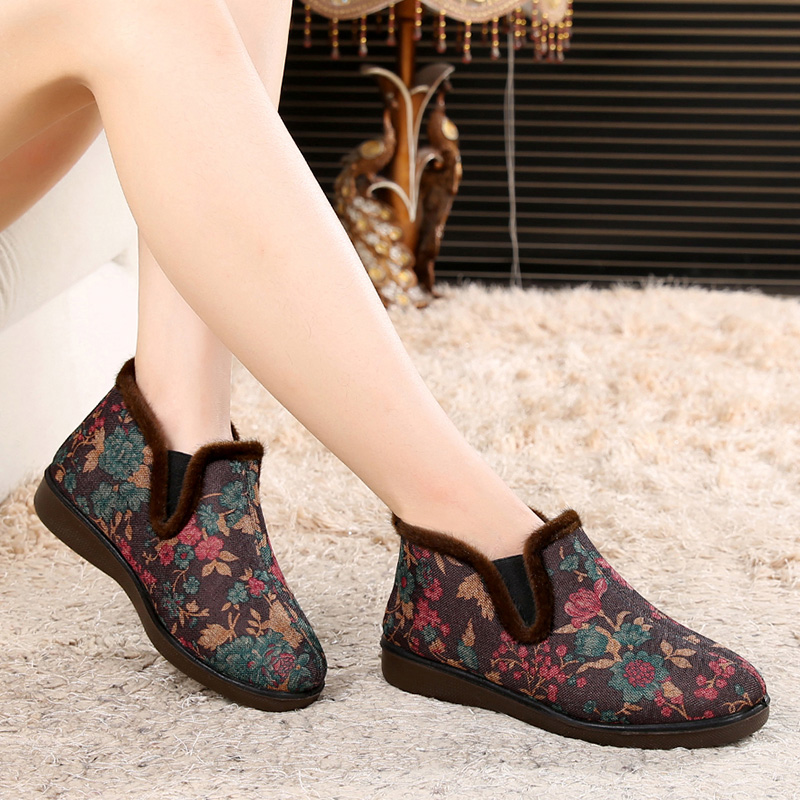 Old Beijing cloth shoes women's cotton shoes middle-aged and elderly plus velvet warm non-slip mother shoes winter flat soft bottom elderly grandma shoes