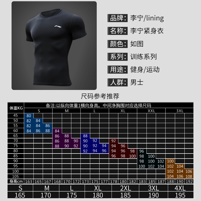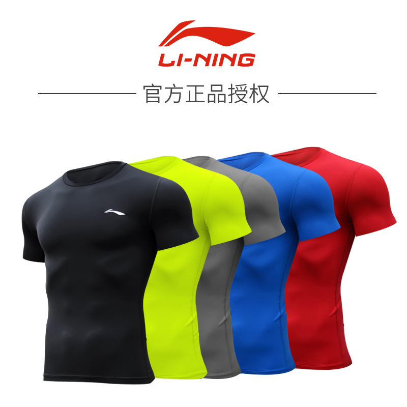 Li Ning fitness clothes men's T-shirt sports tights gym training compression clothes quick-dry running short sleeve top
