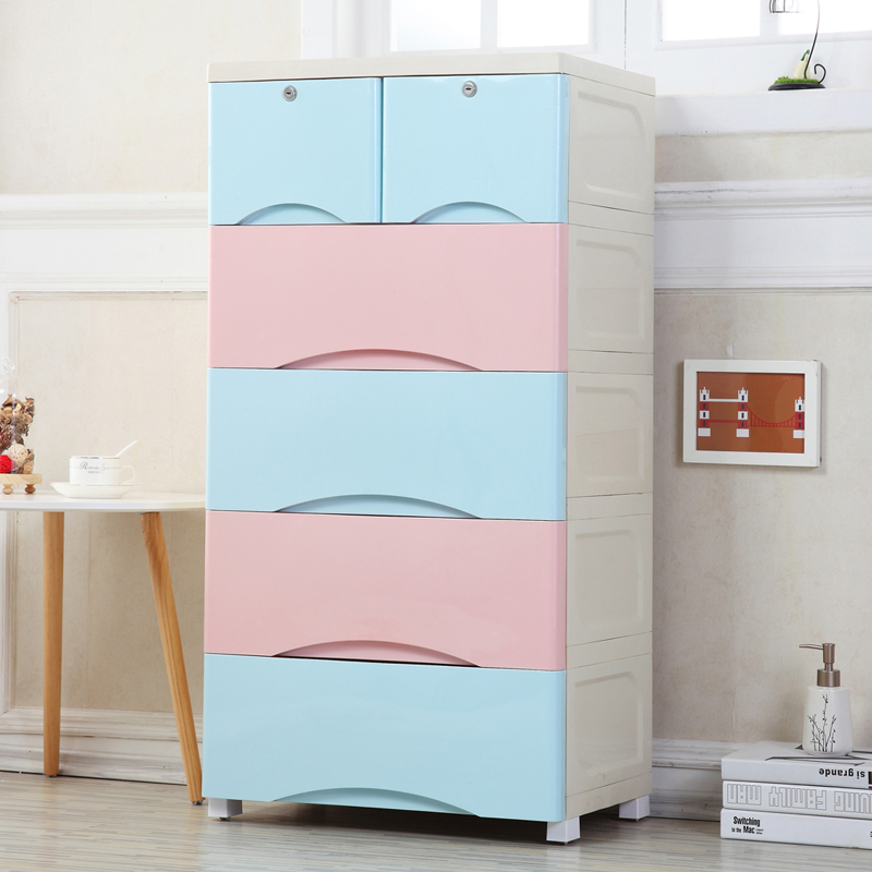 Thickened drawer-containing cabinet five-story baby plastic baby children lockers wardrobe toys multilayer five-bucket cabinets