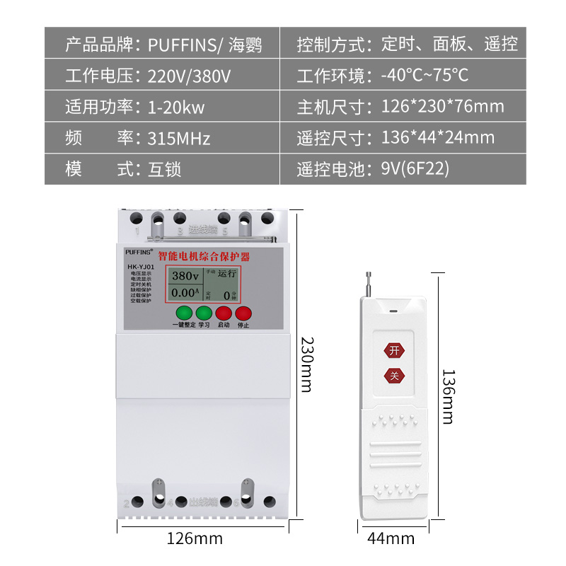HK380V wireless remote control switch pumping water pump motor remote three-phase high-power intelligent controller remote control switch