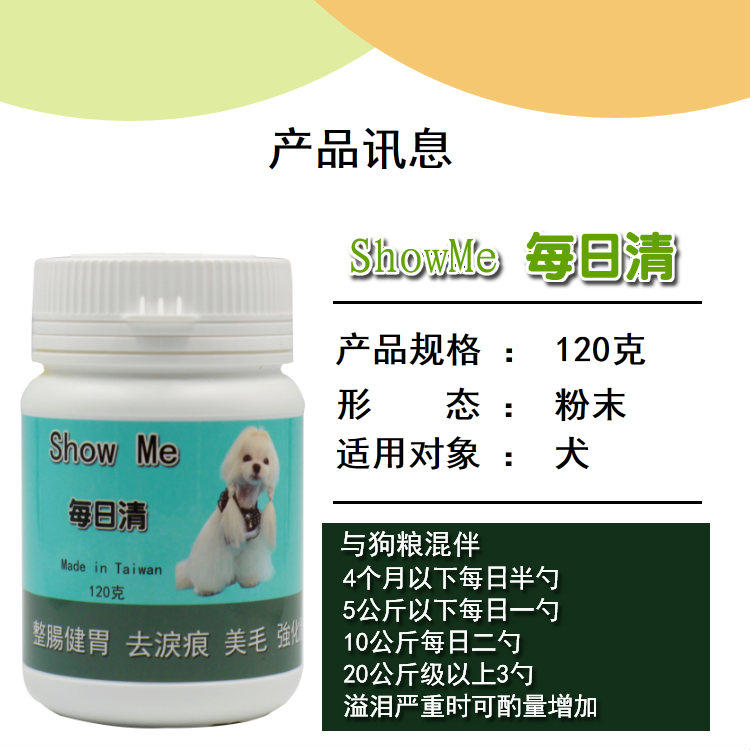 Taiwan showme daily cleaning 120g pet dog Bichon Frize removes tear marks, resists tear marks, whole intestines and stomach