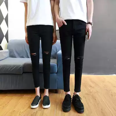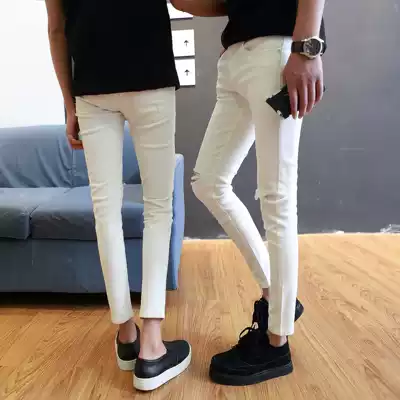 Ankle-length pants men slim pair jeans summer stretch tight body hole Korean version 9 points pencil pants men trend