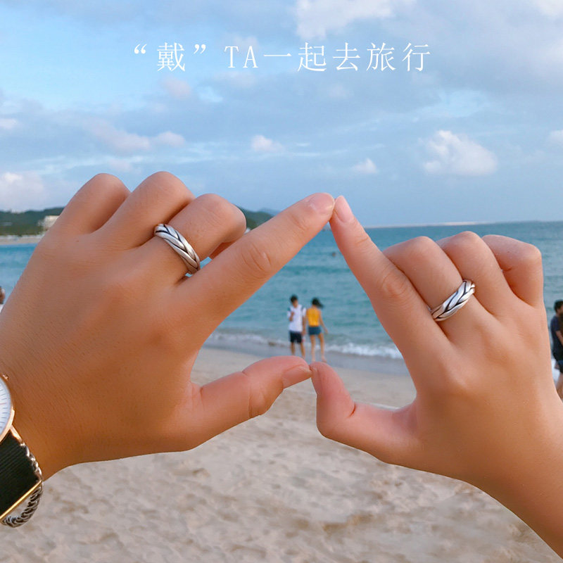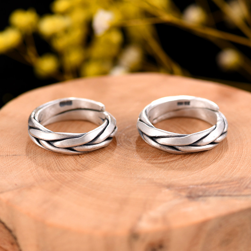 Rotai old silversmith 999 sterling silver twist woven couple ring men and women vintage weave a pair of niche design sense