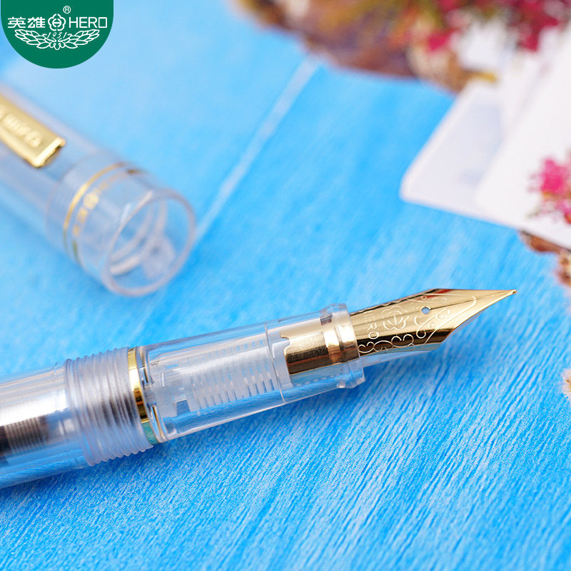 Hero brand pen 1202 high-value transparent color pen gift gift for male and female students third grade primary school students special children's pen retro replaceable ink bag official store
