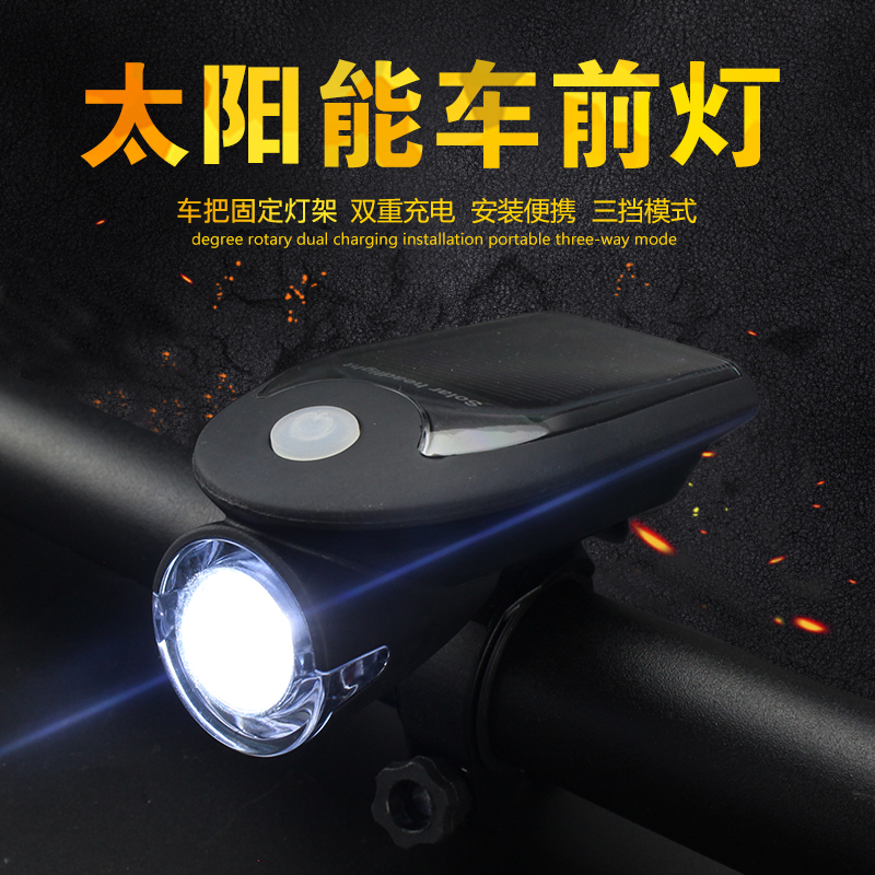 Bike Front Light Mountaineering Lights USB Solar Charging Headlamp Floodlight Torch Riding Equipment Accessories