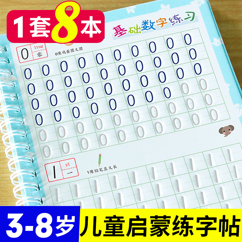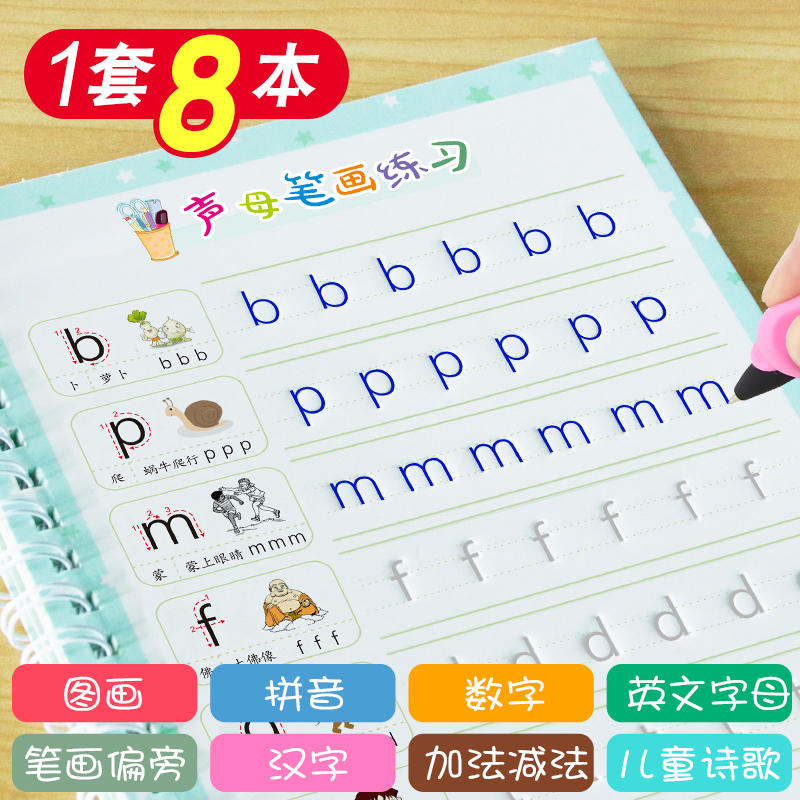 Children's groove practice copybook preschool kindergarten digital tracing red book 3-6 years old beginner writing copybook pinyin practice enlightenment large, medium and small class numbers 1-100 radicals stroke order Chinese characters