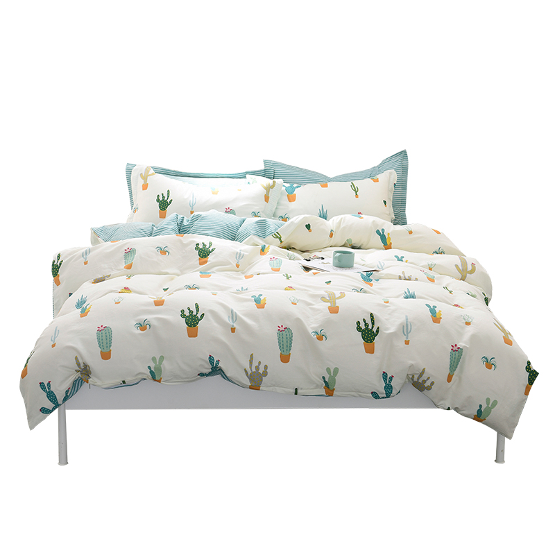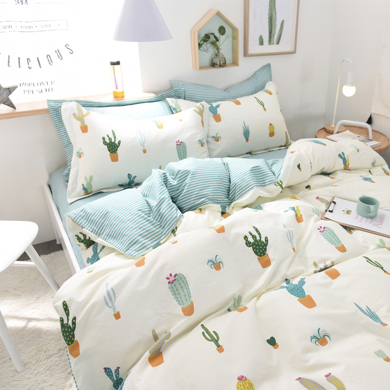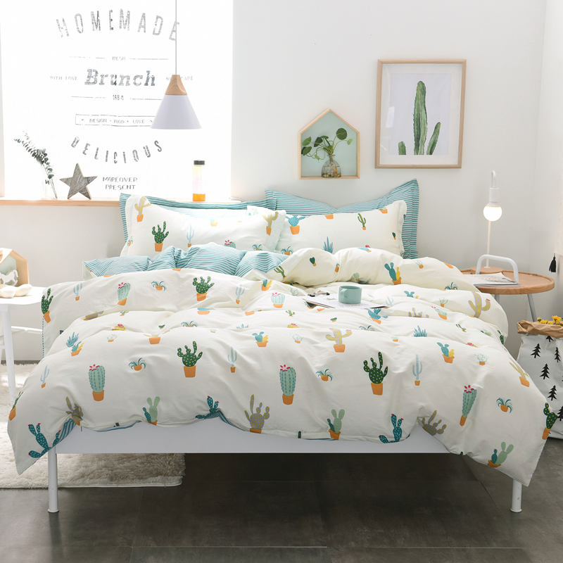 ins Cactus Nordic simple style Cotton double 4 four-piece set bedding Cotton student bedroom three-piece set