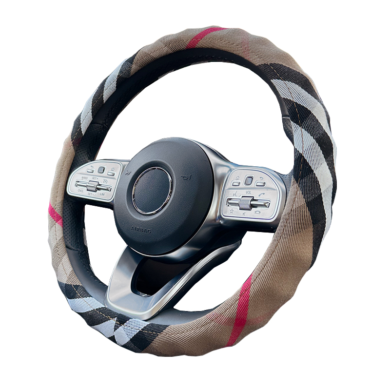 Love Cheng is simple about twill plaid cloth handlebar cover unisex four seasons summer sweat-absorbing car steering wheel cover