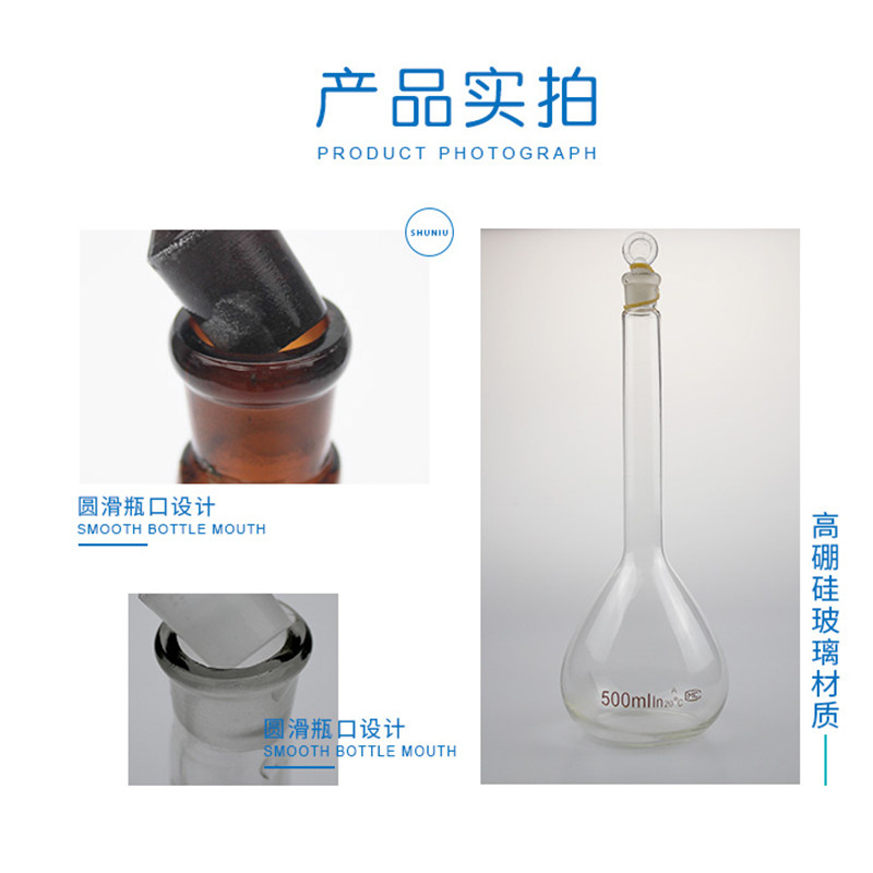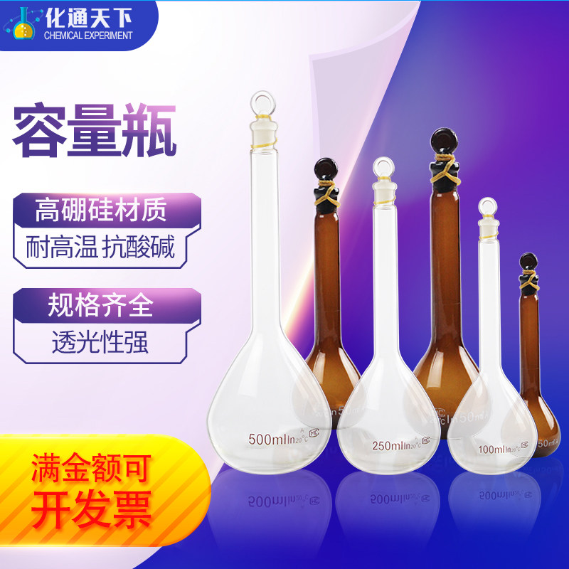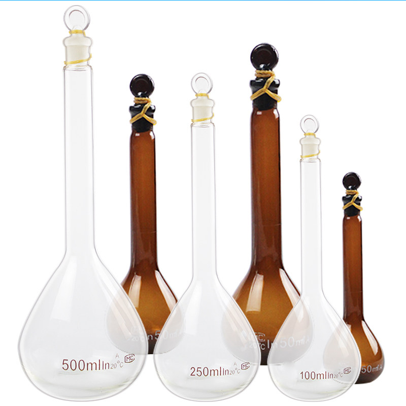 Single-marked glass volumetric flask white transparent volumetric flask brown slender-necked big belly flask chemical solid white-brown volumetric flask