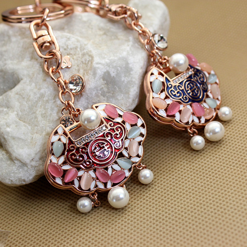 China Wind Personality Creative Long Life Lock Key Button Car Key Chain Hanging Decoration Goddess Bag Pendant Cute Refinement-Taobao