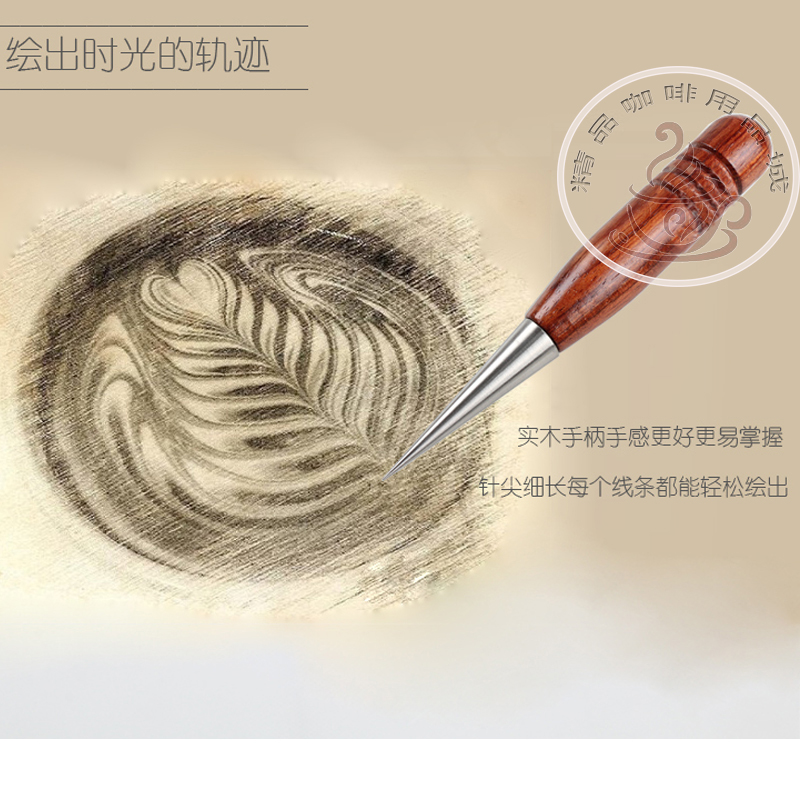 Han Style Solid Wood Handle Stainless Steel Laflower Needle Flower Style Coffee Coffee Maker Special Carved Flower Needle Hook Brush