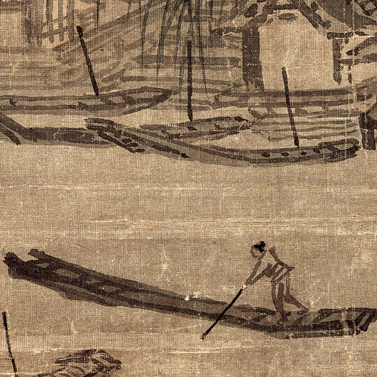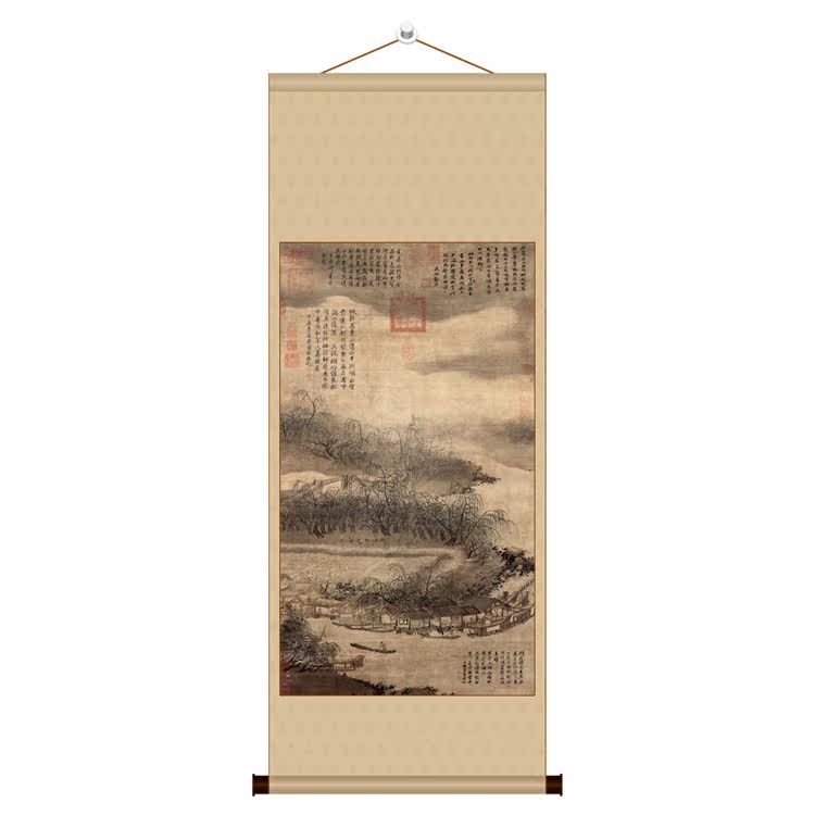 West Lake Lyu Boat Figure Five-ruler Canvas Strip Vertical Shaft Imitation Ancient Landscape Figure Soft Framed Calligraphy of the Chinese Painted Painted Xia Gui