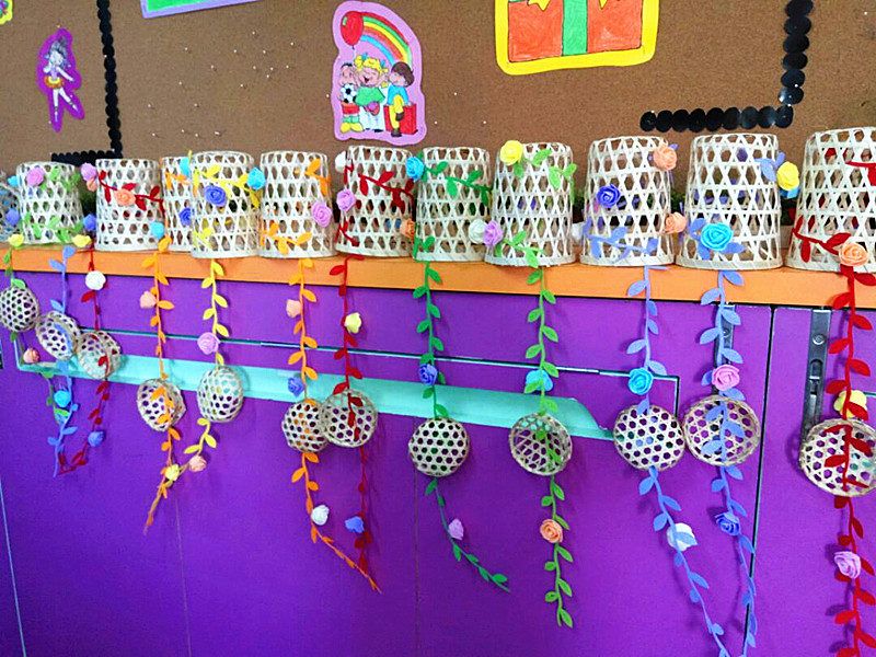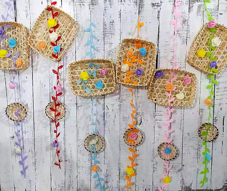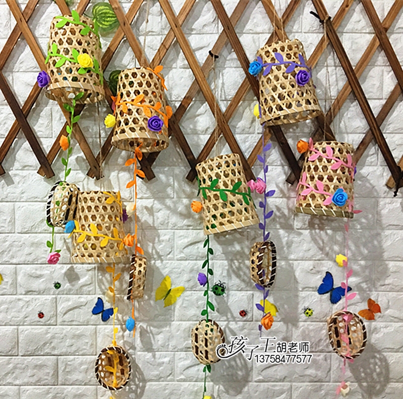Kindergarten classroom theme environment culture children's handmade creative materials diy Chinese style bamboo basket hanging ornament