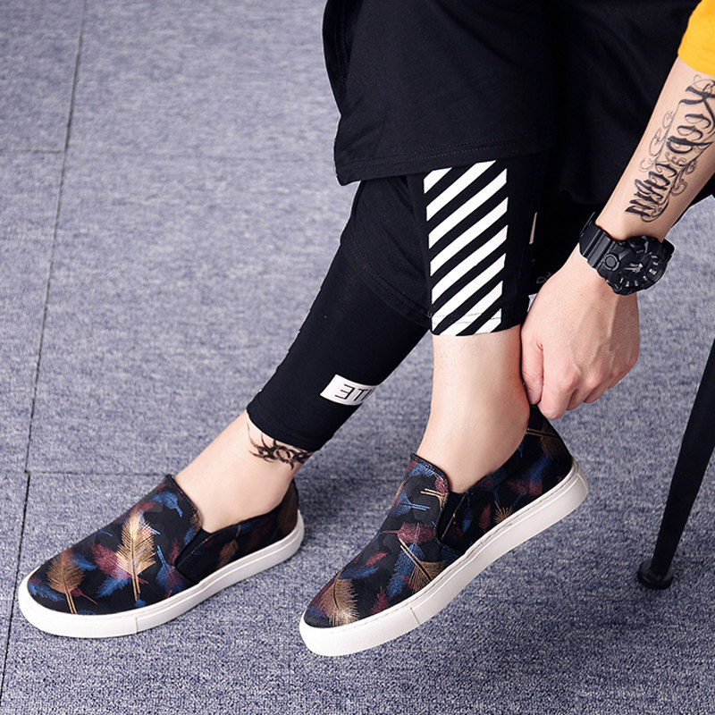 A foot pedal sloth shoes men's Korean version sails shoes printed flat shoes men's casual camouflavored bean lefu shoe tide