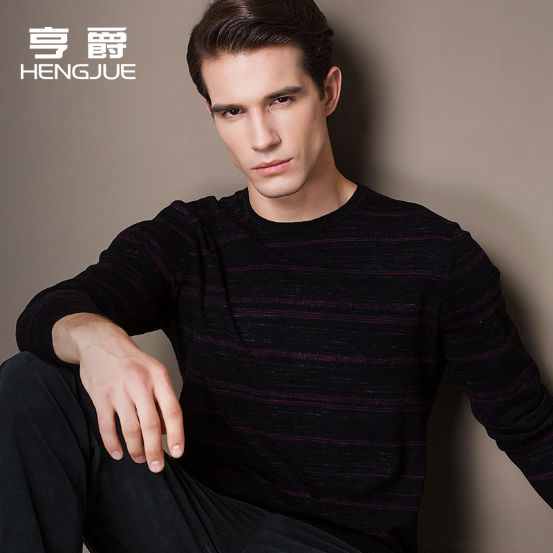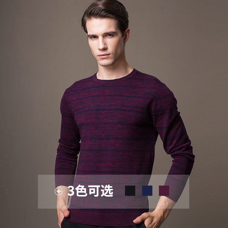 2017 new thin striped lamb sweatshirt male round neck sweater sweater for men long sleeves knit undershirt autumn and winter sanitary clothes
